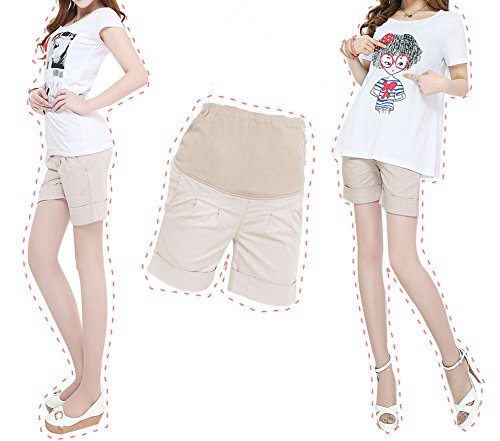(ミコプエラ)Micopuella マタニティ ショートパンツ チノパン 妊婦 パンツ ストレッチ ウエストゴム 調節可能 (ライトベージュL)