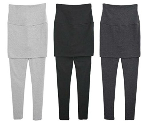 ミコプエラ(Micopuella)【選べる 3色】 マタニティ スカート 付き レギンス パンツ 春~秋 妊婦 さんに (ウエスト 調整機能) フットカバー セット スカッツ スパッツ ( ブラック L)