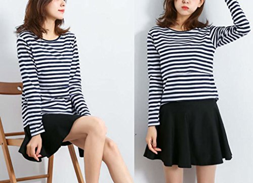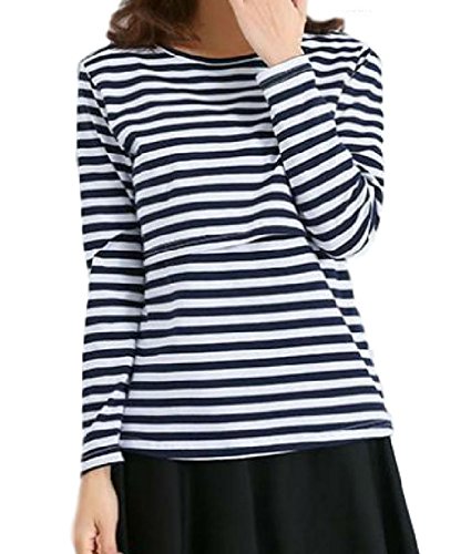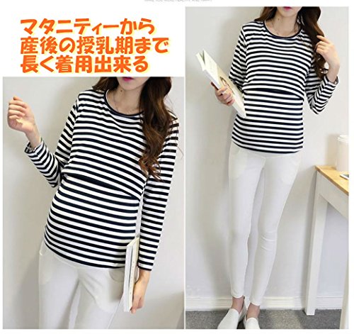 【Micopuella】 授乳口付き tシャツ 長袖 ボーダー 授乳服 トップス カットソー マタニティウェア (XL, ネイビー)