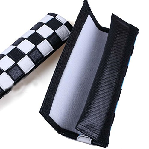 【Micopuella】 汎用 ユニオンジャック チェッカー 柄 シートベルト パッド カバー 2個 セット イギリス 国旗 車内 インテリア グッズ ( チェッカー )