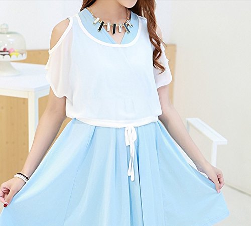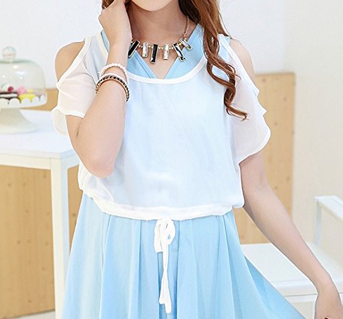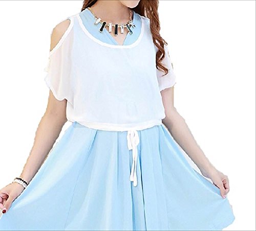 【産後に夏を迎えるママへ】2wayで便利 肩開きシフォントップス マタニティー 授乳ワンピース 全3色 2サイズ (L, 水色)