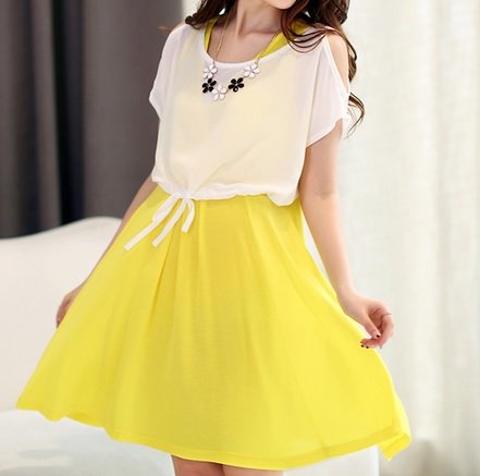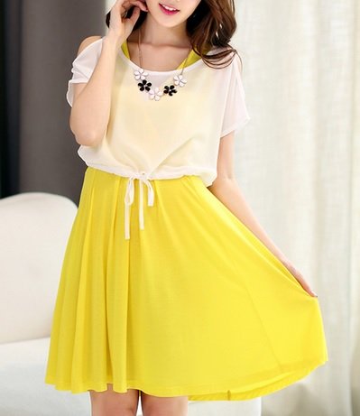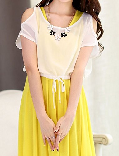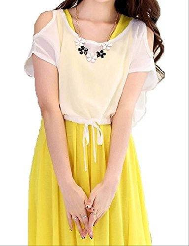 【産後に夏を迎えるママへ】肩開き シフォントップス付き 2way マタニティ 授乳ワンピ 全3色 2サイズ (L, イエロー)