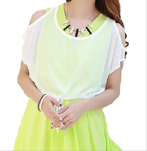 - 肩開きのシフォントップスとワンピースのセットです。