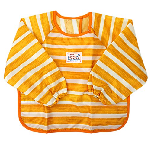スタンプル(stample ) ベビーペイントボーダー お食事エプロン / 長袖 撥水加工 はっ水 ランチスタイ お食事スタイ 赤ちゃん 子供服 ベビー服 離乳食 (マスタード)
