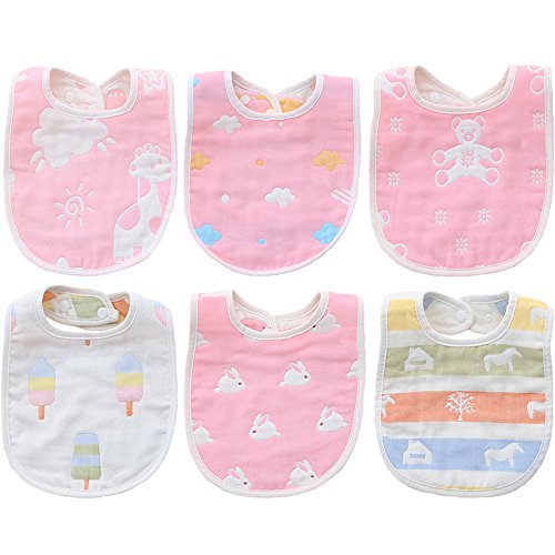 stshell 6重 綿100% よだれかけ ビブ ベビービブ スタイ スーパービブ サイズ調整可能 柔らかい 出産祝い 6枚入り (女の赤ちゃん)
