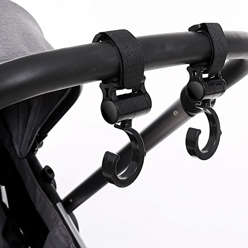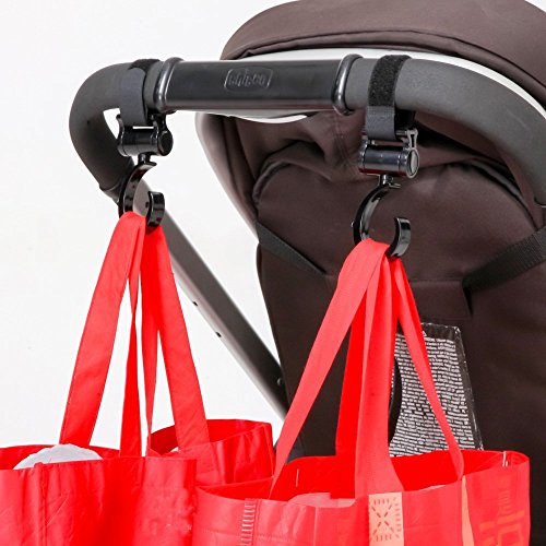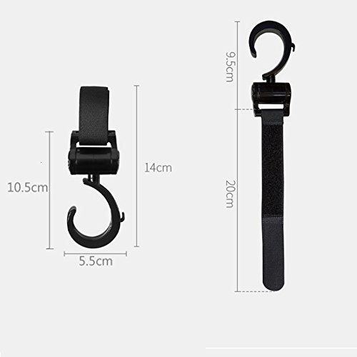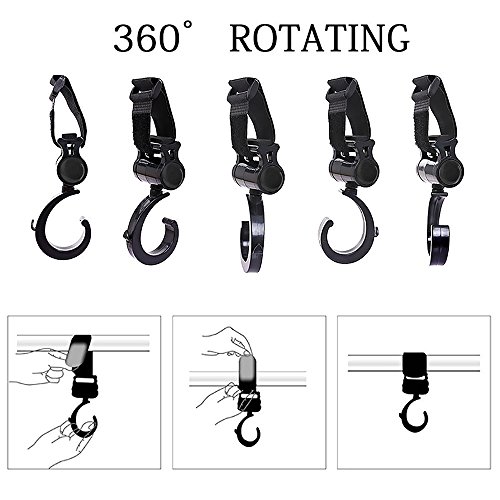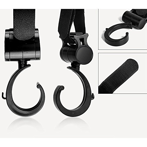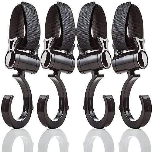 stshell ベビーカーフック マルチ フック 荷物フック 自転車のハンドルやスーツケースにも使える 360度回転 マジックテープ式 4個セット (ブラック)