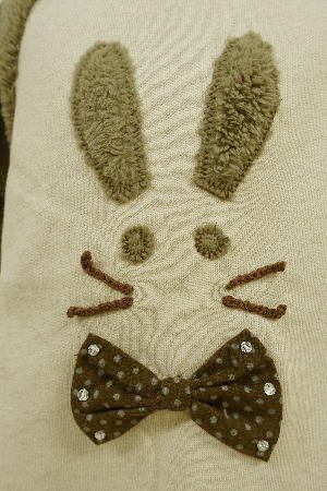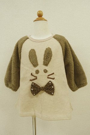 袖フリースボアの裏毛Aライントレーナー。 フリースボアのお袖がふわふわと女の子らしいイメージです。 フロントのリボンうさぎさんのアップリケが可愛いね。