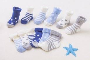 ベビー 靴下 ソックス 6足セット裏パイル編み 0~6ヵ月 星柄 ボーダー柄
