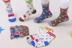 男の子 キッズ ソックス 6足セット 約1歳から3歳 くるま柄