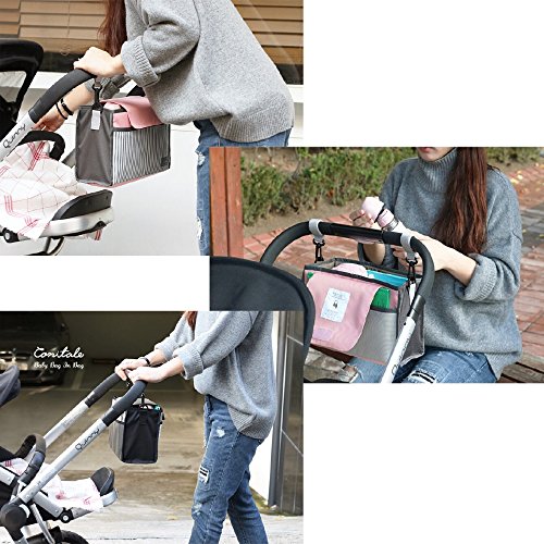 - お子様が必要な哺乳瓶、おむつと財布、携帯電話、飲み物などの小物をまとめて入れ、収納スペースたっぷり♪