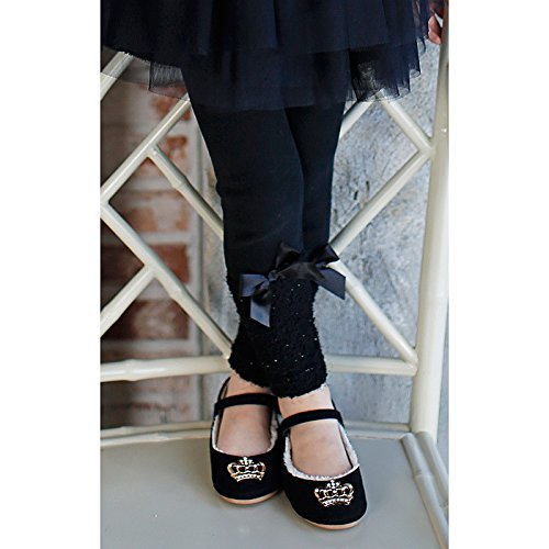 TMM ガールズ スパッツ タイツ レギンス ズボン 裏起毛 あったかい リボン ガール 女の子 コットン 綿 秋冬 (100cm, ブラック)