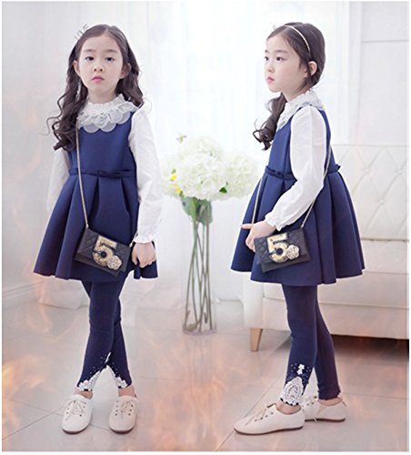 TMM ガールズ スパッツ タイツ レギンス ズボン リボン 柄 レース あったかい ガール 女の子 コットン 綿 秋冬 ズボン 裏起毛 あったかい リボン 柄 パール レース (100cm, ネイビー)