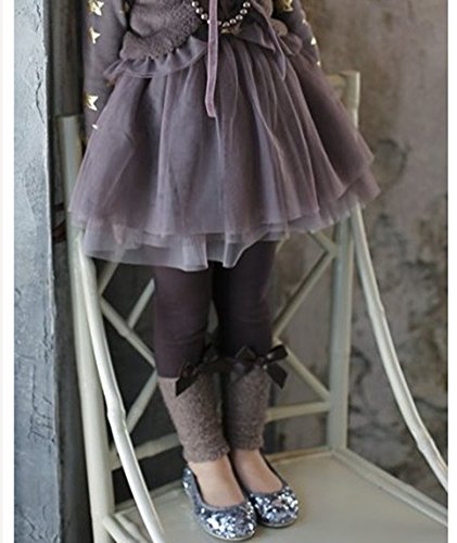 TMM ガールズ スパッツ タイツ レギンス ズボン 裏起毛 あったかい リボン ガール 女の子 コットン 綿 秋冬 (130cm, ブラウン)