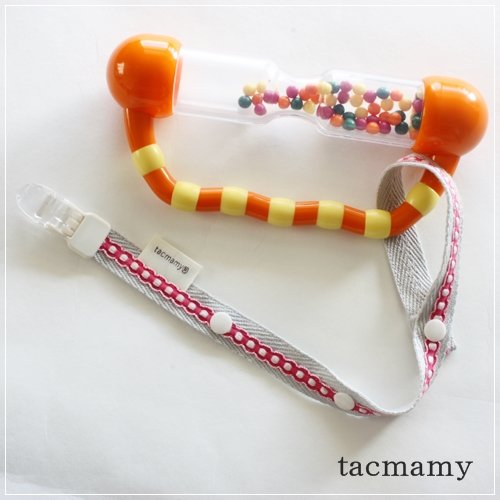 tacmamy(タックマミー) おしゃぶりホルダー 長さ3段階調節 全27種類 (ホワイト×オレンジ)