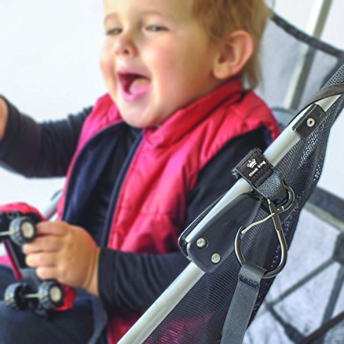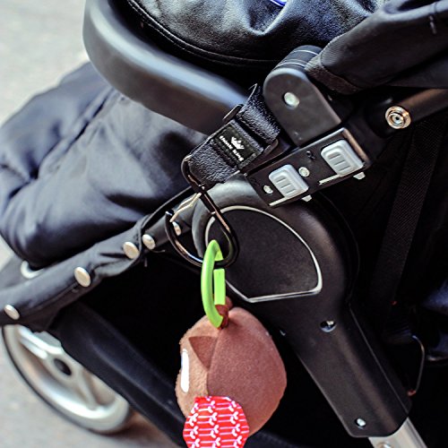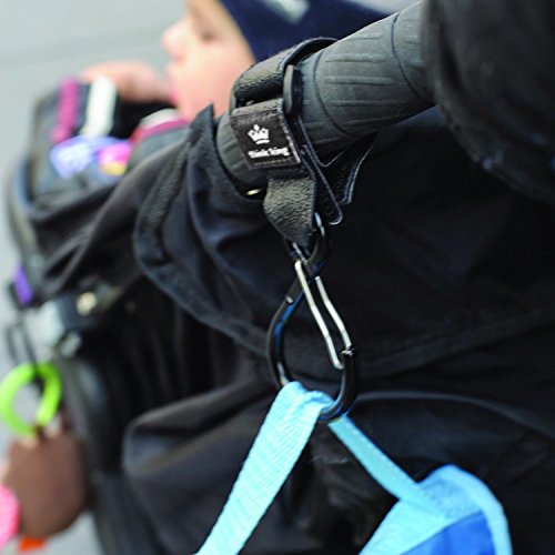 Smooth and sturdy clip that won't pinch your fingers;Strong and lightweight aluminum that won't break;Strong easy to use latch holds items securely;Deep U shape can accommodate extra wide purse/bag handles;Short hook holds bags close to stroller