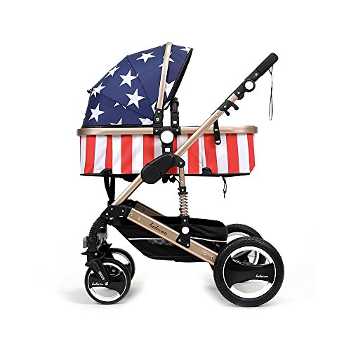 ベビーカー ハイシートベビーカー 4輪ベビーカー 両対面ベビーカー 折りたたみ式 通気性良い 物置袋付き (アメリカンフラグ)