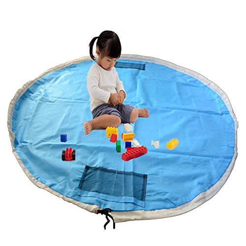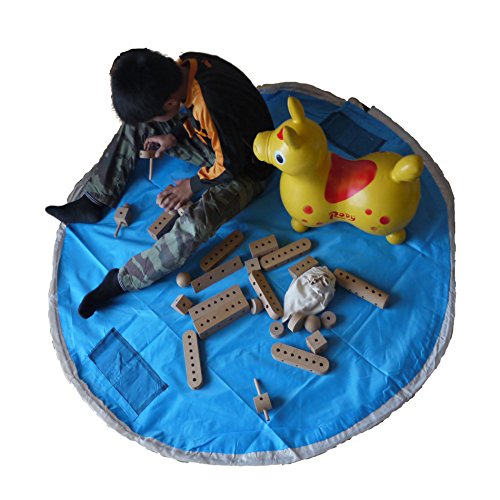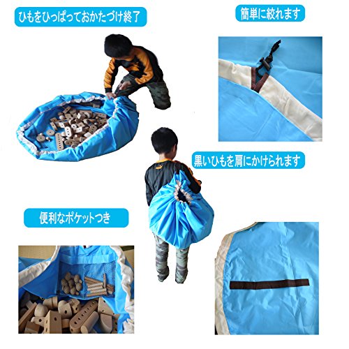 - 広げると、直径150cmと大変ワイドなサイズですが、ひもを引くと1分足らずでかたづけが終了!ブロックや積み木遊びをしていても、さっとひもを引くと片付けが終わります。お友達のうちで遊ぶ時や、ピクニックや海水浴に、そして、赤ちゃんやペットのレジャーシートがわりに持っていくこともできます。絞ってしまえば収納袋になり、肩にかけて持ち運びもできる優れものです。