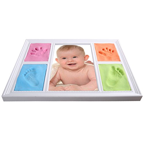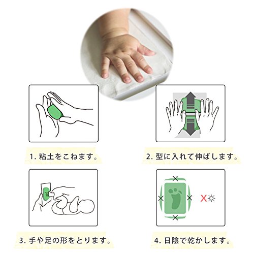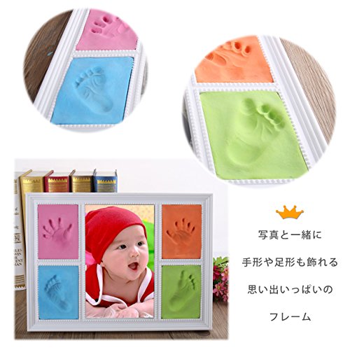 - 手・足用に4色の粘土を入れる4箇所のスペースがあり、赤ちゃんの大きな画像と一緒に飾ると部屋がぱっと明るくなります。