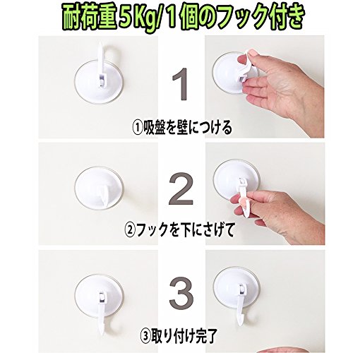 - 1つのネットにつき、吸盤(耐荷重5kg)が2個付属しているので、すぐに壁に貼り付けて収納することができます。輪っか部分をフックにかければ、ベッドサイドや壁面収納、クローゼットの中にかけて収納、ハンガーなどに掛けて乾かすために使うこともできます。