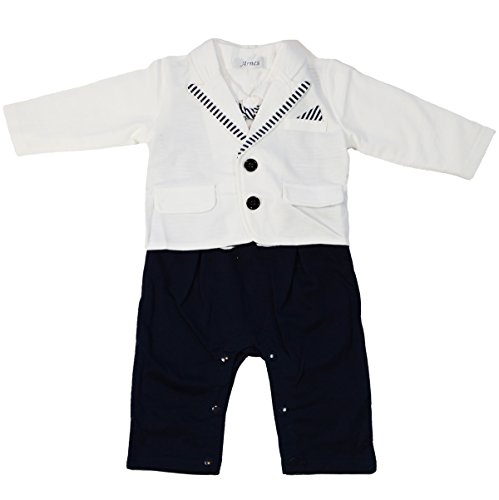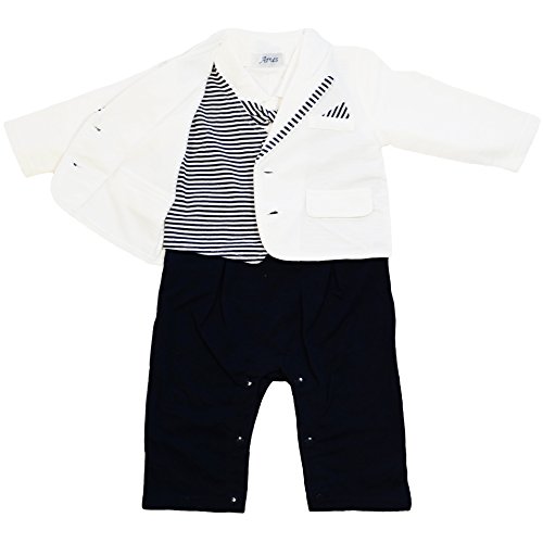 (アーネス)Arnes ベビー フォーマル 子供服 男の子 カバーオール ロンパース タキシード風 結婚式 記念撮影 (ホワイト) 95