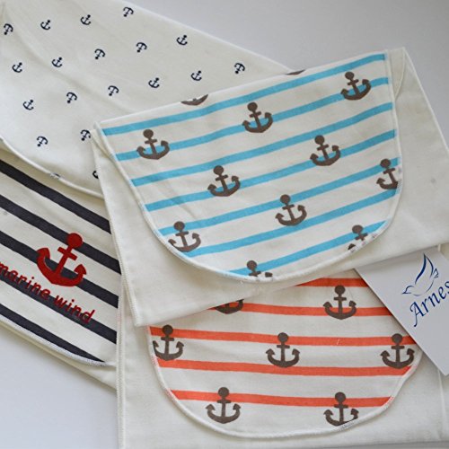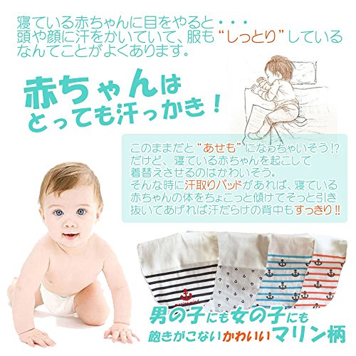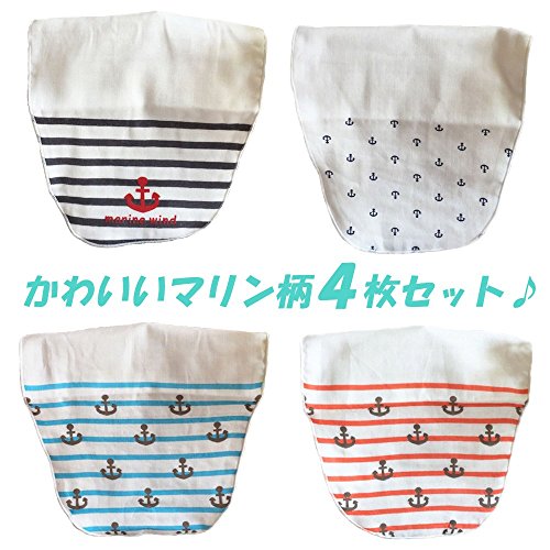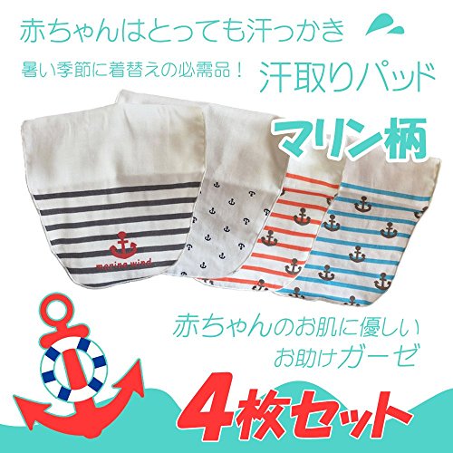 (アーネス)Arnes ベビー 汗取り パッド 4重 ガーゼ マリン 柄 4枚 セット 赤ちゃん 飾り襟 あせも 背中 シート