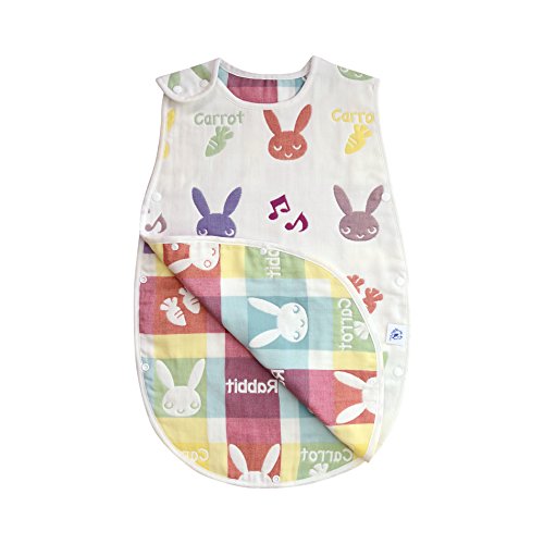 (アーネス)Arnes ベビー スリーパー 改良型 ふわり6重ガーゼ オーガニックコットン 100% 保証付き (新生児から3歳)(うさぎさん)