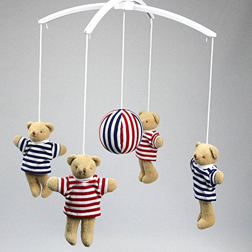 trousselier (トラセリア) 手巻式オルゴール付ベッドメリー ベア レッド×ネイビー【M1101】