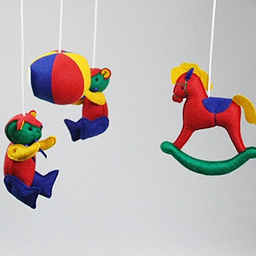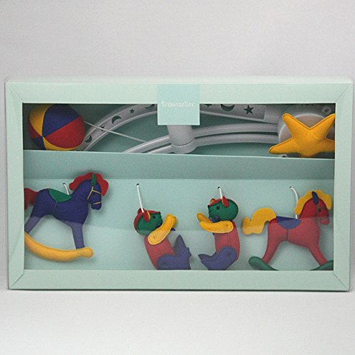 フランス、Trousselier(トラセリア)の赤ちゃんのおねんねにオススメなベッドメリー(オルゴールメリー)です。 お部屋の雰囲気を大切にしたいママにピッタリ♪インテリアとしても素敵なベッドメリーです。 赤ちゃんが目で追いかけやすいカラフルカラーのベッドメリーです。 色鮮やかなフェルト素材のカラフルなクマや木馬がオルゴールの音色にあわせてゆっくりと回ります。 インテリアにこだわるママに愛され続けてきたトラセリアのロングセラーのベッドメリー。 落ち着いた雰囲気なのでお部屋の雰囲気をかえることなく赤ちゃんとの新生活を楽しめます。 オルゴールのネジを巻くとオルゴールの音色は、約2~2分半ほど流れます。 愛らしいマスコットたちが、オルゴールの音色にあわせてゆっくりとまわります。 電子音ではない本物のオルゴールの音色に、きっと赤ちゃんも満足してくれますね♪