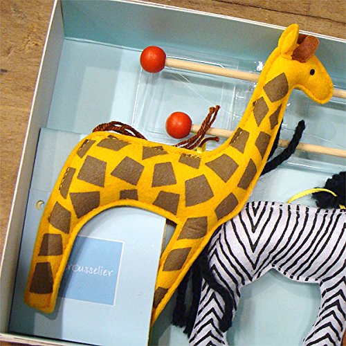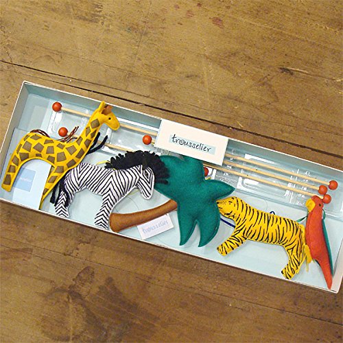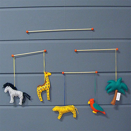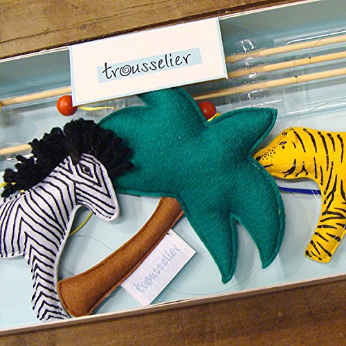 フランス、Trousselier(トラセリア)の赤ちゃんの追視にもオススメなインテリアモビールです。 ヨーロッパでは子供部屋のインテリアとして欠かせないモビール。 トラセリアのモビールは、子供部屋だけでなくリビングのおしゃれなインテリアとしても人気があります♪ ビビッドでカラフルなヨーロッパらしい色合いとモビールのジャングルの動物たちのマスコットの組み合わせが抜群に素敵です。 布製のモビールは、バランスが難しいためあまり見かけませんが、トラセリアは布製にこだわり、大人の方でも、ほんわかやさしい気持ちにしてくれる、そんな安らぎを与えてくれるモビールに仕上げてます。 愛らしいマスコットたちが、お部屋の空気の流れでゆらゆらと動くので、ベッドメリーのかわりにベビーベッドの近くに吊下げてあげれば、赤ちゃんもずっと動く様子を楽しそうに眺めてくれます。