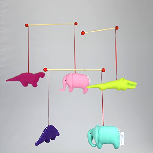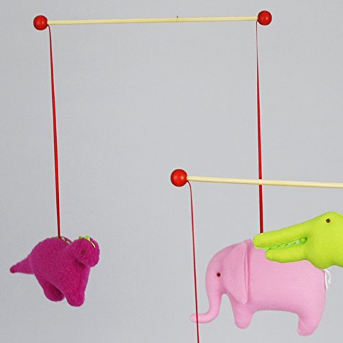 フランス、Trousselier(トラセリア)の赤ちゃんの追視にもオススメなインテリアモビールです。 ヨーロッパでは子供部屋のインテリアとして欠かせないモビール。 トラセリアのモビールは、子供部屋だけでなくリビングのおしゃれなインテリアとしても人気があります♪ ビビッドでカラフルなヨーロッパらしい色合いとモビールのキュートな恐竜のマスコットの組み合わせが抜群に素敵です。 布製のモビールは、バランスが難しいためあまり見かけませんが、トラセリアは布製にこだわり、大人の方でも、ほんわかやさしい気持ちにしてくれる、そんな安らぎを与えてくれるモビールに仕上げてます。 愛らしいマスコットたちが、お部屋の空気の流れでゆらゆらと動くので、ベッドメリーのかわりにベビーベッドの近くに吊下げてあげれば、赤ちゃんもずっと動く様子を楽しそうに眺めてくれます。