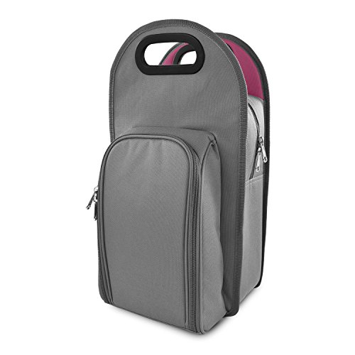This 2 bottle tote bag includes: 2 acrylic wine glasses, 2 napkins, 1 white Truetap double-hinged corkscrew and 1 bottle stopper. Inside, there is a removable insert and insulated lining to adjust to your storage needs. Its handles make it easily transportable in any circumstance.