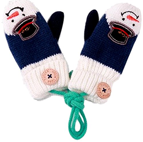 (eones) 手袋 ベビー キッズ 子供 ニット ミトン ゆきだるま 紐付き おでかけ用 あったか 防寒 全5色 (ネイビー)