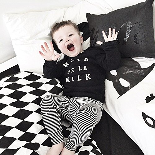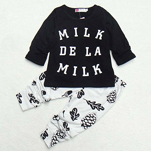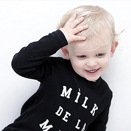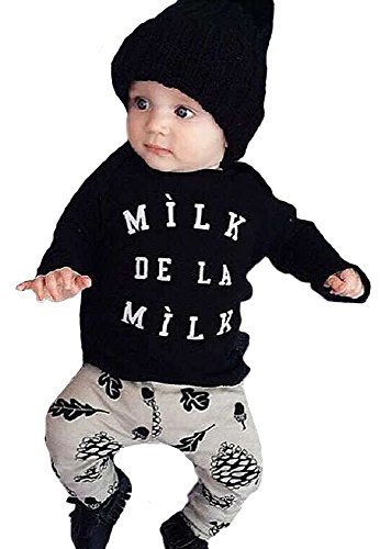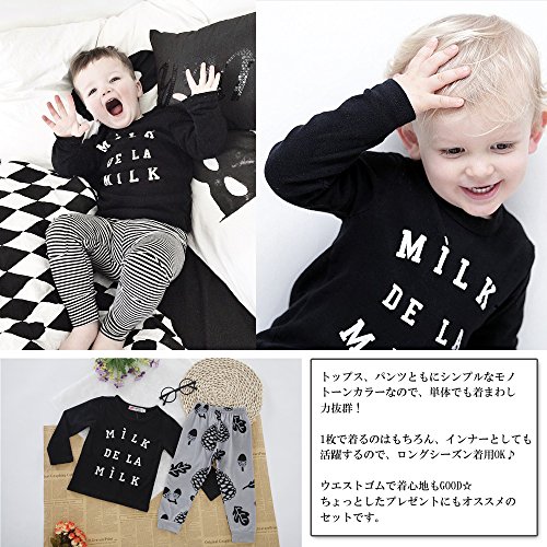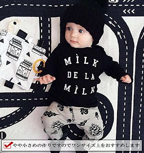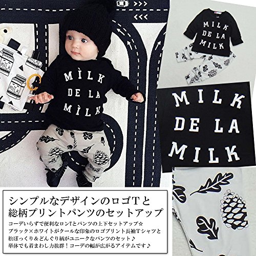 (ウイ カプア) u'i Kapua 英字 ロゴ 松ぼっくり どんぐり プリント 長袖 Tシャツ & パンツ 上下 セット アップ 子供 ベビー 服 男の子 ( 90 , ブラック )