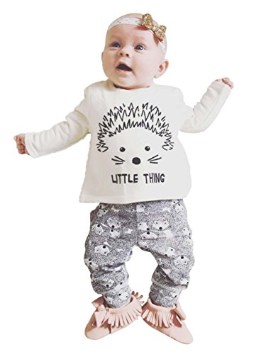 - ハリネズミ柄がキュート♪ 女の子ベビー用 ロングTシャツ&サルエルパンツのセットアップです!