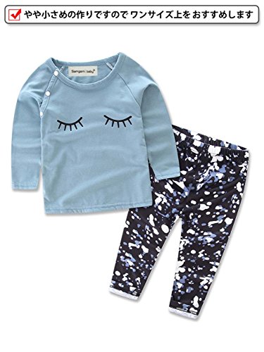 (ウイ カプア) u'i Kapua ドルマン 風 長袖 Tシャツ & レギンス パンツ セットアップ 女の子 ベビー服 子供服 (90,ブルー)