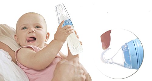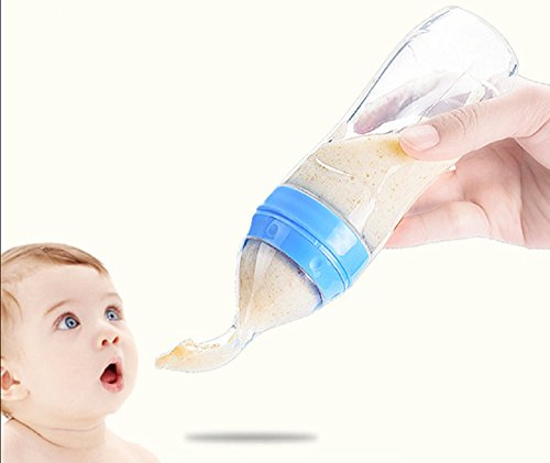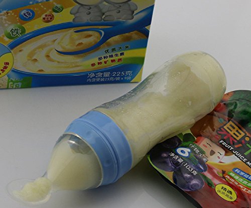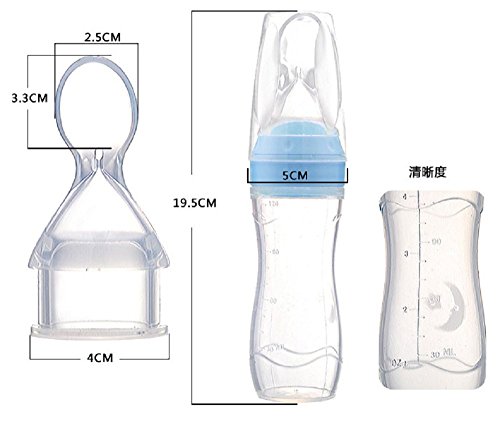 ベビー離乳スプーン 離乳食用 シリコン製 哺乳びんとスプーンを1つに (ブルー)