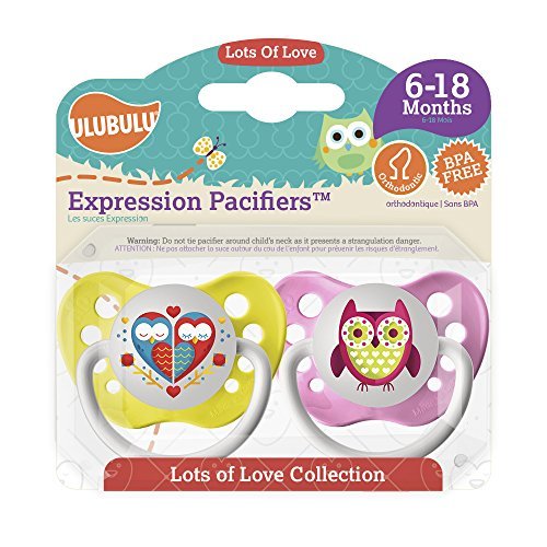 • Ulubulu Pacifiers for Girls, Hearts and Owls, 6-18 months by Ulubulu