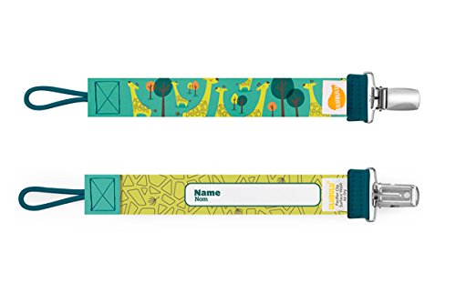 デンマークで設計されたおしゃぶりホルダー。他には無いデザインが人気です。 キュートな柄で目立つのは勿論、クリップ部分が金属製で強い強度があります。 おしゃぶりを振り回したりして遊ぶ赤ちゃんでも外せません。 おしゃぶりに繋げる部分はユニバーサルループになっていて、どんな形状のおしゃぶりにも付けられます。 おしゃぶりだけではなく、歯固めやおもちゃなどにも使えます。 ストラップ裏面には名前を記入する事もできます。洗濯可能。