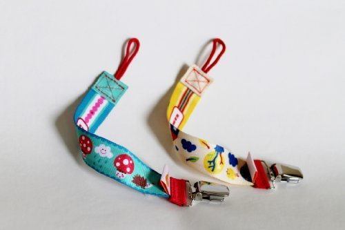 universal pacifier clip with personalization field on the back;Cotton strap with metal clip;Universal fit with nylon loop, fits your favorite brand of pacifier;Complies with US AC:2002 and EN 12586:199