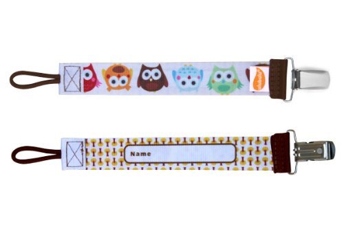 デンマークで設計されたおしゃぶりホルダー。他には無いデザインが人気です。 キュートな柄で目立つのは勿論、クリップ部分が金属製で強い強度があります。 おしゃぶりを振り回したりして遊ぶ赤ちゃんでも外せません。 おしゃぶりに繋げる部分はユニバーサルループになっていて、どんな形状のおしゃぶりにも付けられます。 おしゃぶりだけではなく、歯固めやおもちゃなどにも使えます。 ストラップ裏面には名前を記入する事もできます。洗濯可能。