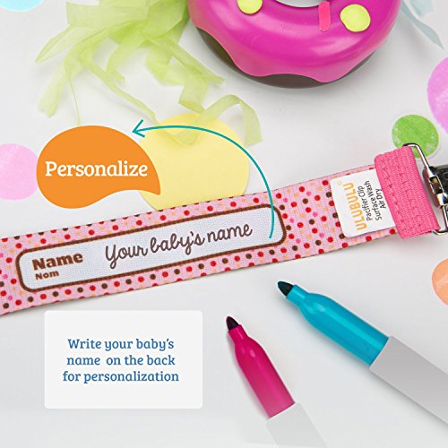 デンマークで設計されたおしゃぶりホルダー。他には無いデザインが人気です。 キュートな柄で目立つのは勿論、クリップ部分が金属製で強い強度があります。 おしゃぶりを振り回したりして遊ぶ赤ちゃんでも外せません。 おしゃぶりに繋げる部分はユニバーサルループになっていて、どんな形状のおしゃぶりにも付けられます。 おしゃぶりだけではなく、歯固めやおもちゃなどにも使えます。 ストラップ裏面には名前を記入する事もできます。洗濯可能。