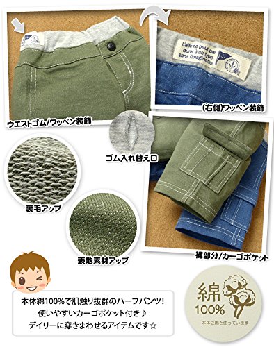 ベビー服 男の子 ハーフ パンツ ボトム 裏毛 無地 カーゴポケット ウエストゴム 男児 ベビー (2.カーキ/80cm)