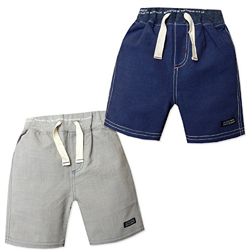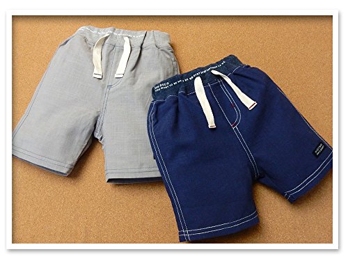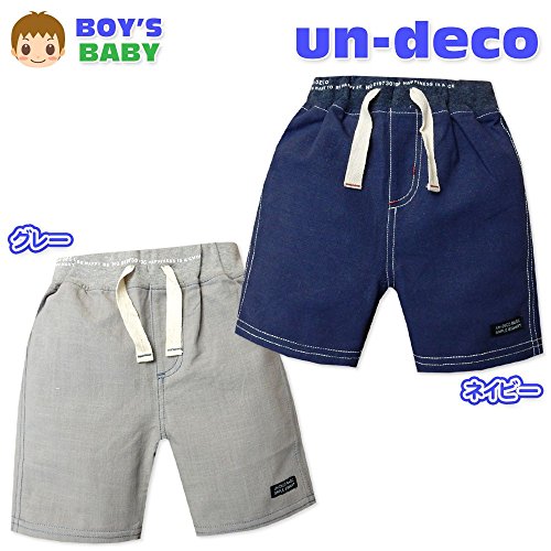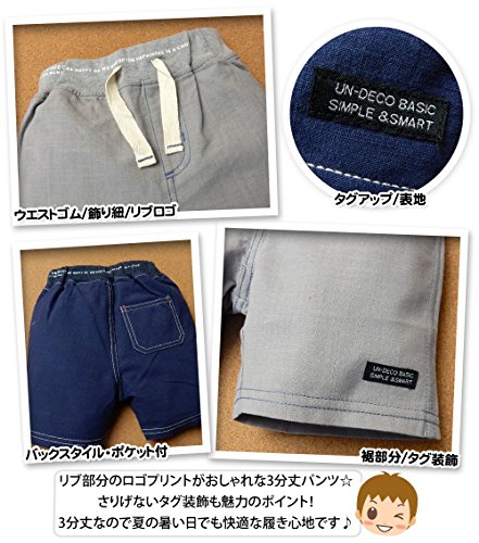 (グレー/90cm) ベビー服 男の子 3分丈 パンツ ボトム 布帛 ウエストゴム ロゴ 飾り紐 男児 ベビー