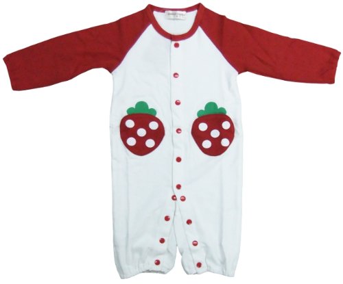 (sweet melon)イチゴ ベビーカバーオール 綿100% (80, ホワイト)