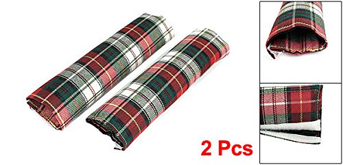 uxcell セーフティーシートベルトカバーペア 赤、緑、グリッドパターン ショルダーパッドスリーブ