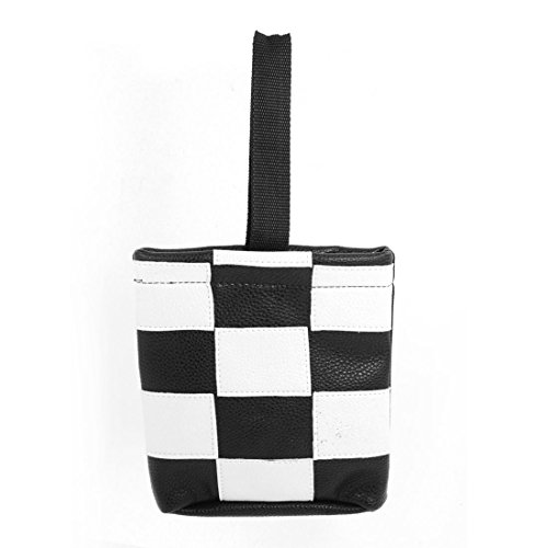 白と黒のチェックのにせの革、車内の携帯電話貯蔵ポーチです。