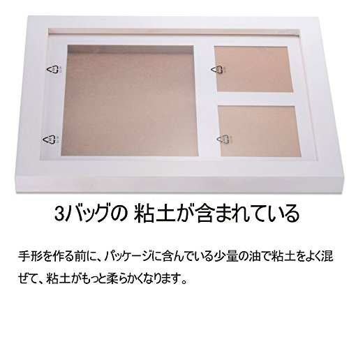 製品説明: 1.将来、赤ちゃんは大人になりますが、この特別なフレームが赤ちゃんの瞬間をキャプチャし、赤ちゃんの小さい頃を維持することができます。 2.この古典的な白い木製のフレームは、赤ちゃんの手形、足跡、そして愛らしい写真のためのスペースを持っています。そして、それは単にお赤ちゃんの手形と足形をキャプチャするのに適切な方法です。 3.私たちの赤ちゃんの手形とフットプリントのフレームでは、お時間を止め、この記憶に残る瞬間をキャプチャすることができます。 4.この簡単なDIYのフレームと無上な思い出を作成し、彼がいつか大人として成長したときにお子供はそれを感謝します。 5.赤ちゃんはプライスレス思い出に感謝しますし、あなたはそれに値します。 製品仕様: 製品のサイズ:30.5*25*3.5cm 梱包の質量:892g 製品の素材:粘土、木材、クリアガラス 選択可能な色:白、ピンク、水色、黒 製品の特徴: 可愛い、耐久性、お手入れ簡単、無毒性 1) まず、制作前に、粘土が柔らかくなるように、銀色のパックに入った状態で2‐3分間 (25℃以上) ぐらい揉みます。柔らかすぎる場合は、冷蔵庫で1時間ぐら置いてください。 (2) 粘土を平らに延ばす際、なるべく丸くなるように練って、丁寧に粘土をフレームに載せ、滑らかにさせます。 手でゆっくり押し広げ、適当な厚さの粘土を作り、押さえて平たくなった後、手の平またはプラスチック板などで粘土の表面の手の跡を消します。 (3) 手形を作る前に、赤ちゃんの手と足が乾燥すぎることを防止し、よりよい形のエフェクトを得るために、ベビースキンクリームを少し塗ってください。手形または足形を作る時、赤ちゃんの手または足と手の指を一本ずつ丁寧に5秒で捺印すると、丁寧に移動し、深くとはっきり見える手形が作れます。注意:片手で力が不均一ですので、そのようにしないでください。 (4) この粘土は乾燥型ですので、できた手形を直射日光やオーブンで乾かしたりしないでください。 風通しのいいところで平らに置いて、何日かかけてじっくり乾かしてください。 注意:未硬化前は粘土に触らないで下さい。 (5) 自分で作った形を満足しない場合は、粘土を繰り返し揉むと作り直すことができます。ただし何度も作り直しできません。天気により、粘土の表面にワセリンや油などの油を塗って、硬化の速度を遅らせることができます。 作った後に赤ちゃんの手と足を洗ってください。 (6) できた形を約48時間乾かすと完成します。(温度と湿度により乾燥な時間が違います) 注意:粘土の包装を解けた後、できるだ半時間以内で完成してください。そうしないと、蒸発するのせいで、乾燥しやすいです。 手形・足形を取った後に粘土の水気をきちんと飛ばさないとカビが生えて来ますので、乾燥作業は怠らないようにして下さい。
