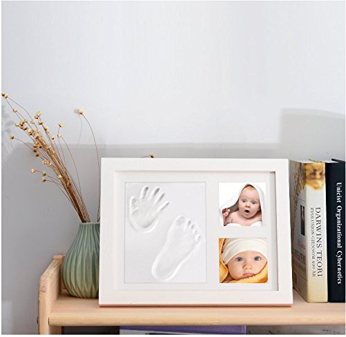 vegonia(ベゴニア) 赤ちゃんの手形 綺麗なベビーフレーム記念品 足形フレーム プライスレスなメモリ アクリルガラスと安全な非毒性の粘土 良品質の木製フレーム 男女通用 赤ちゃんのための完全なギフト - ホワイト