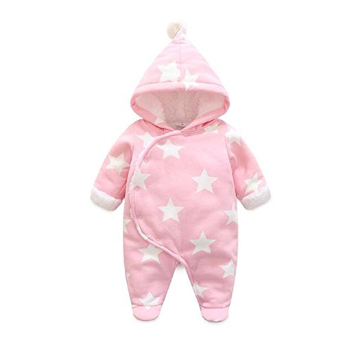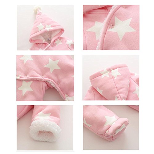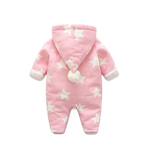 vivisclassic 子供 ベビー 服 赤ちゃんの柔らかい綿のフード付きカバーオール 長袖 赤ちゃん 幼児 コットン ロンパース 新生児秋冬防寒保温 出産祝い 衣装 (ピンク, 12-18ゲ月)