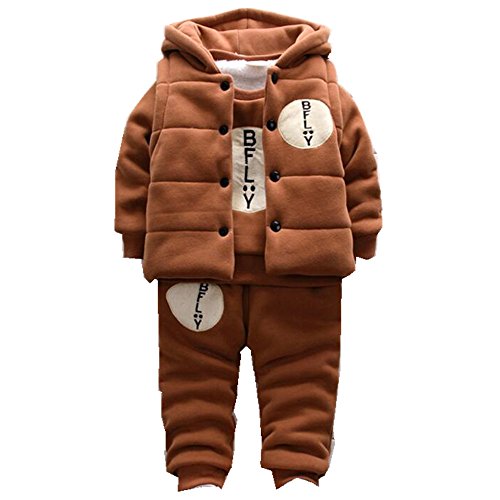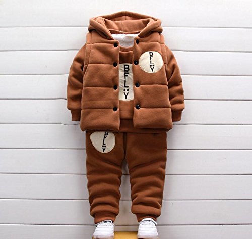 vivisclassic 子供服 子供コート 赤ちゃん綿服 ベビーコート 男の子女の子 綿入り服 3点セット(上着+パンツ+チョッキ)暖かい裏起毛 かわいい キッズ 防寒服 男女兼用 秋冬 防風 防寒 保温 日常/通園/通学 (カーキ, M)